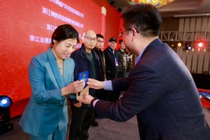 澎龙锂电总经理周尚勇作为颁奖嘉宾之一,为荣获百强供应商的多家企业颁发颁发奖项。